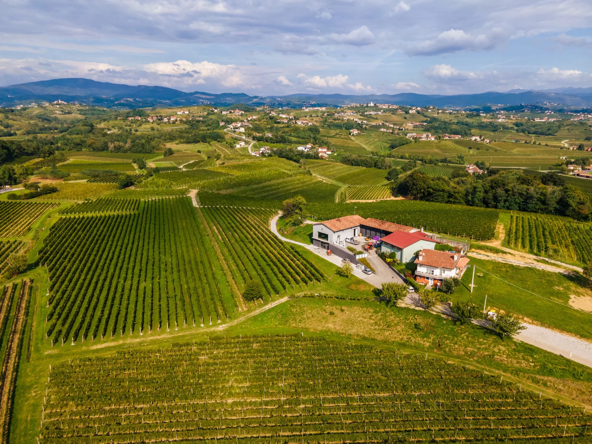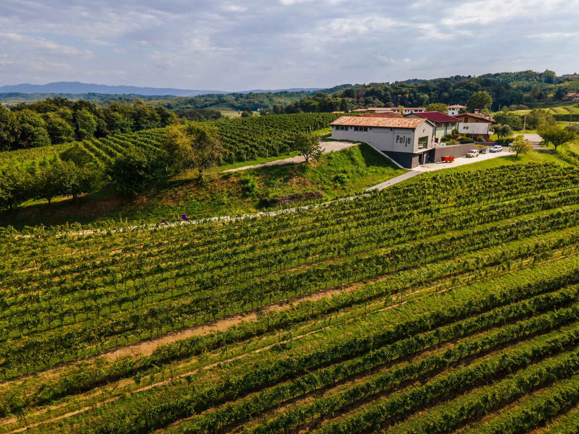 L'acquisizione della tenuta Polje, nel paese di Cormons è avvenuta per gradi e oggi i vigneti si estendono attorno alla cantina per circa 15 ettari fra quel meraviglioso polmone che è il bosco di Plessiva e il confine con la Slovenia, e per altri 9 ettari in località Scriò nel comune di Dolegna del Collio. Colline morbide e sinuose queste doline, chiamate appunto "polje", formatesi per erosione delle Alpi Giulie, si elevano per poche centinaia di metri sul livello del mare, con la ponca e l'esposizione a mezzogiorno a caratterizzarne incofondibilmente ogni vistigno.